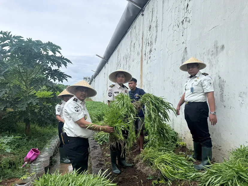 Tak berhenti di situ, lahan perkebunan di dalam Lapas Narkotika Gunung Sindur turut menyumbang hasil panen sayuran yang beragam. Mulai dari sawi 0,05 kwintal, kangkung 0,15 kwintal, selada merah 0,2 kwintal, hingga terong 0,1 kwintal berhasil dipanen. Seluruh komoditas tersebut menjadi bagian dari panen raya yang menunjukkan bagaimana ketahanan pangan tumbuh dan bergerak dari balik tembok pemasyarakatan.