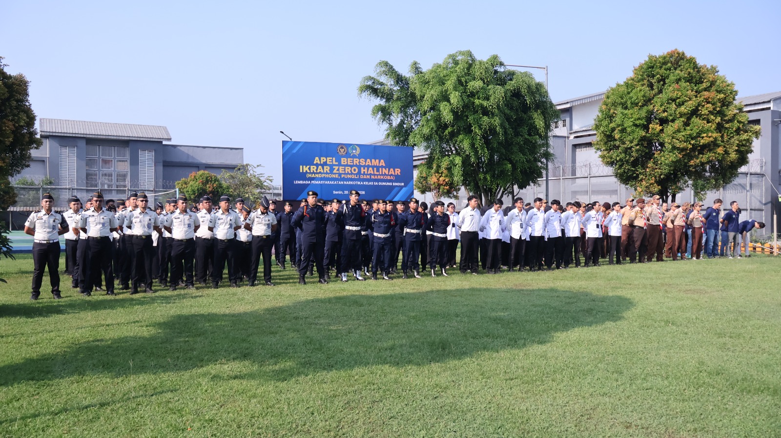Gunung Sindur, 20 April 2026 – Dalam rangka memperingati Hari Bhakti Pemasyarakatan ke-62 Tahun 2026, Lapas Narkotika Gunung Sindur menggelar Deklarasi Ikrar Zero Halinar yang dirangkaikan dengan pemusnahan barang terlarang serta penandatanganan komitmen bersama. Kegiatan ini menjadi wujud nyata dalam menciptakan lingkungan pemasyarakatan yang bersih dari narkoba, handphone ilegal, dan pungutan liar.